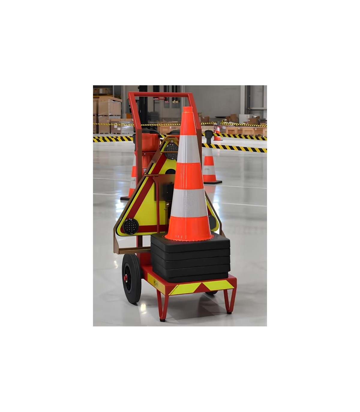 Diese mobile Einheit zur Markierung und Signalisierung ermöglicht die sofortige Sicherung eines Einsatzgebiets. Die maschinengeschweißte Stahlstruktur, die Epoxydharzbeschichtung und die Vollgummiräder mit hoher Kapazität gewährleisten Robustheit und Mobilität auf jedem Gelände, auch in städtischen oder industriellen Umgebungen.