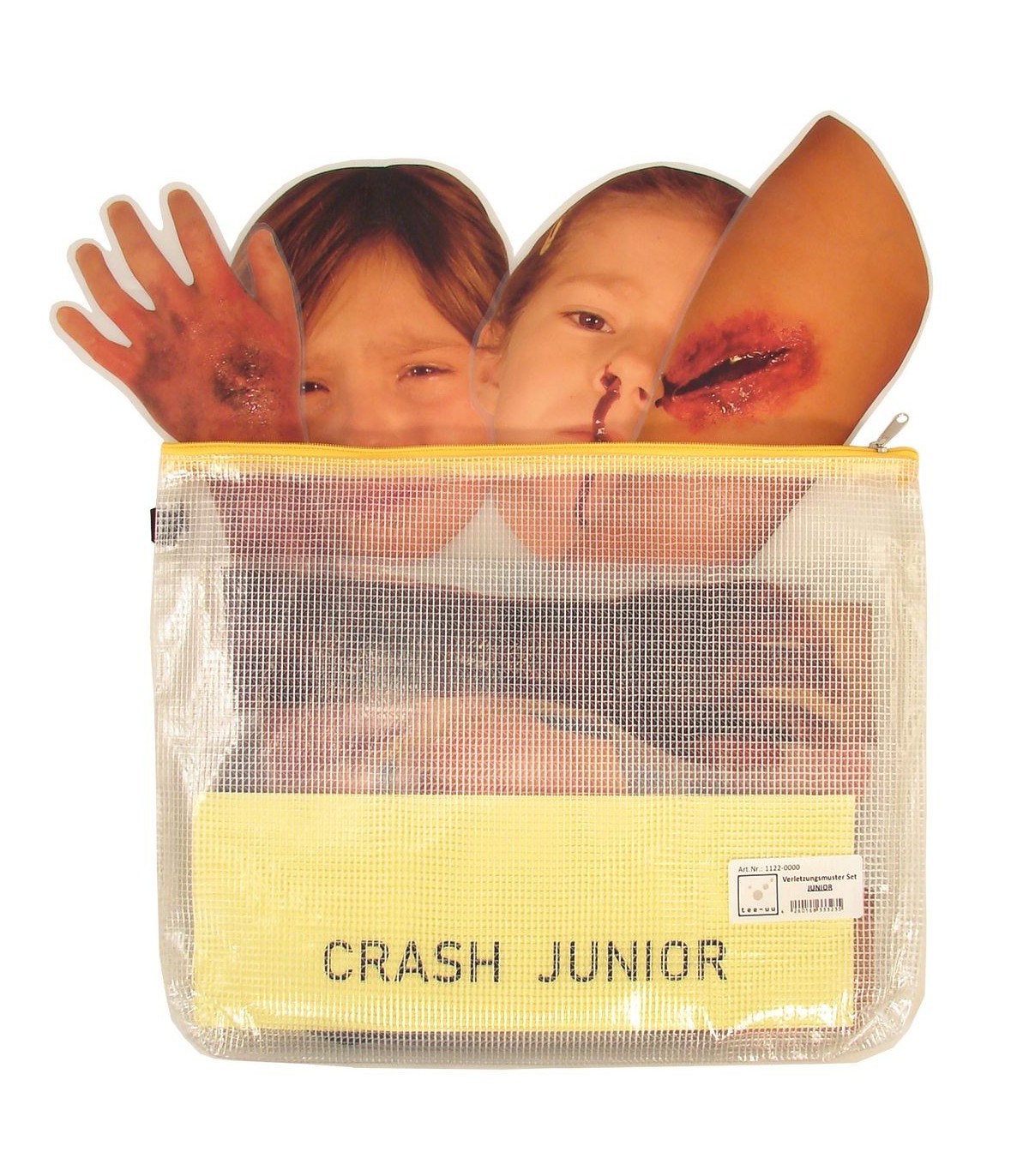 Das TEE-UU APPLICATION OF INJURY Kit für CRASH JUNIOR ist ein Set von Verletzungssimulationen, das zur Bereicherung von Rettungsschulungen mit pädiatrischen Opfern entwickelt wurde. Es ermöglicht die Nachbildung realistischer Notfallsituationen, um die Einsatzbereitschaft der Teams zu verbessern.