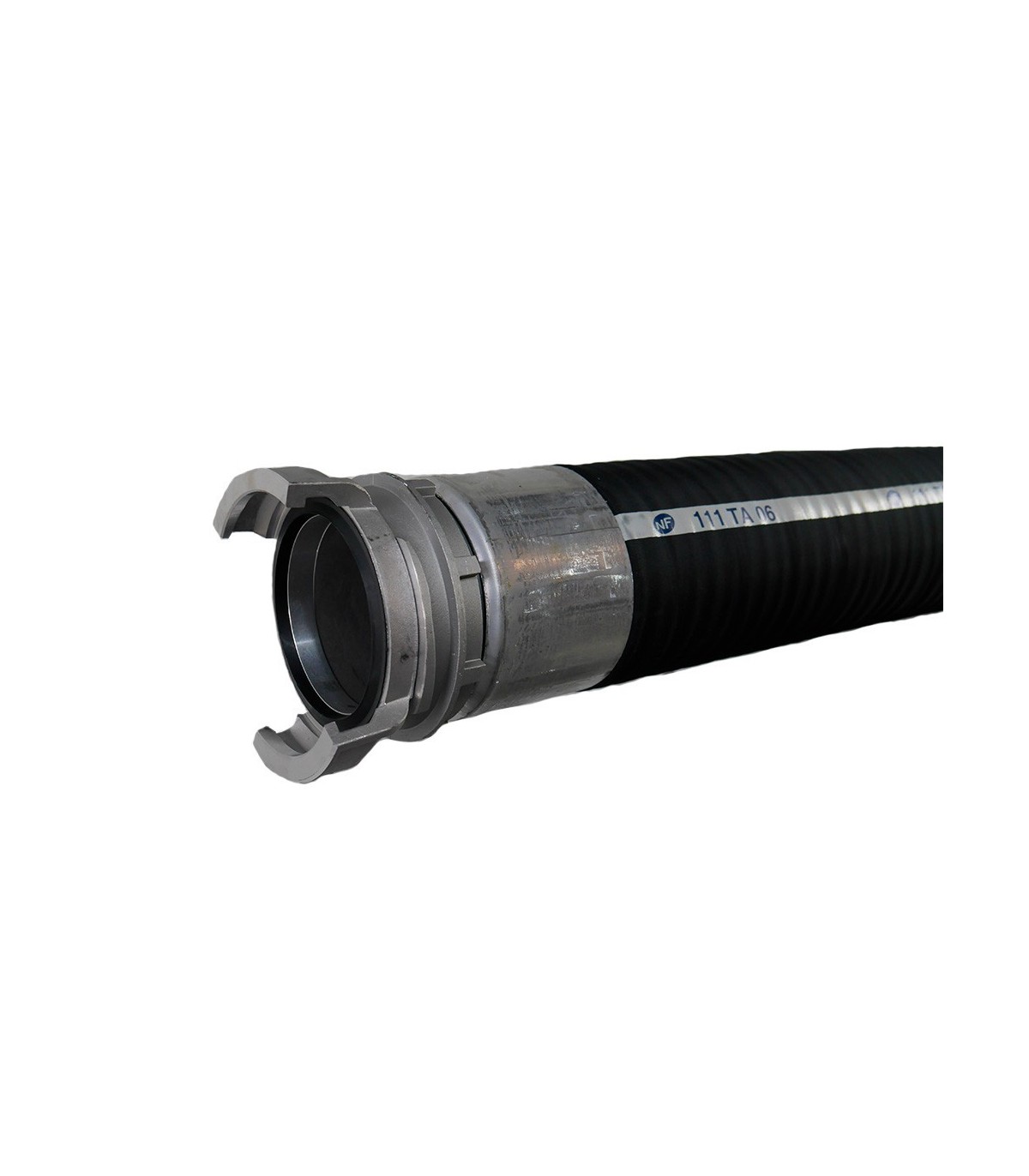 Standardized 4 m suction hose, compliant with NFS 61113 and NF EN ISO 14557 standards, with Guillemin fittings, ideal for fire-fighting operations.