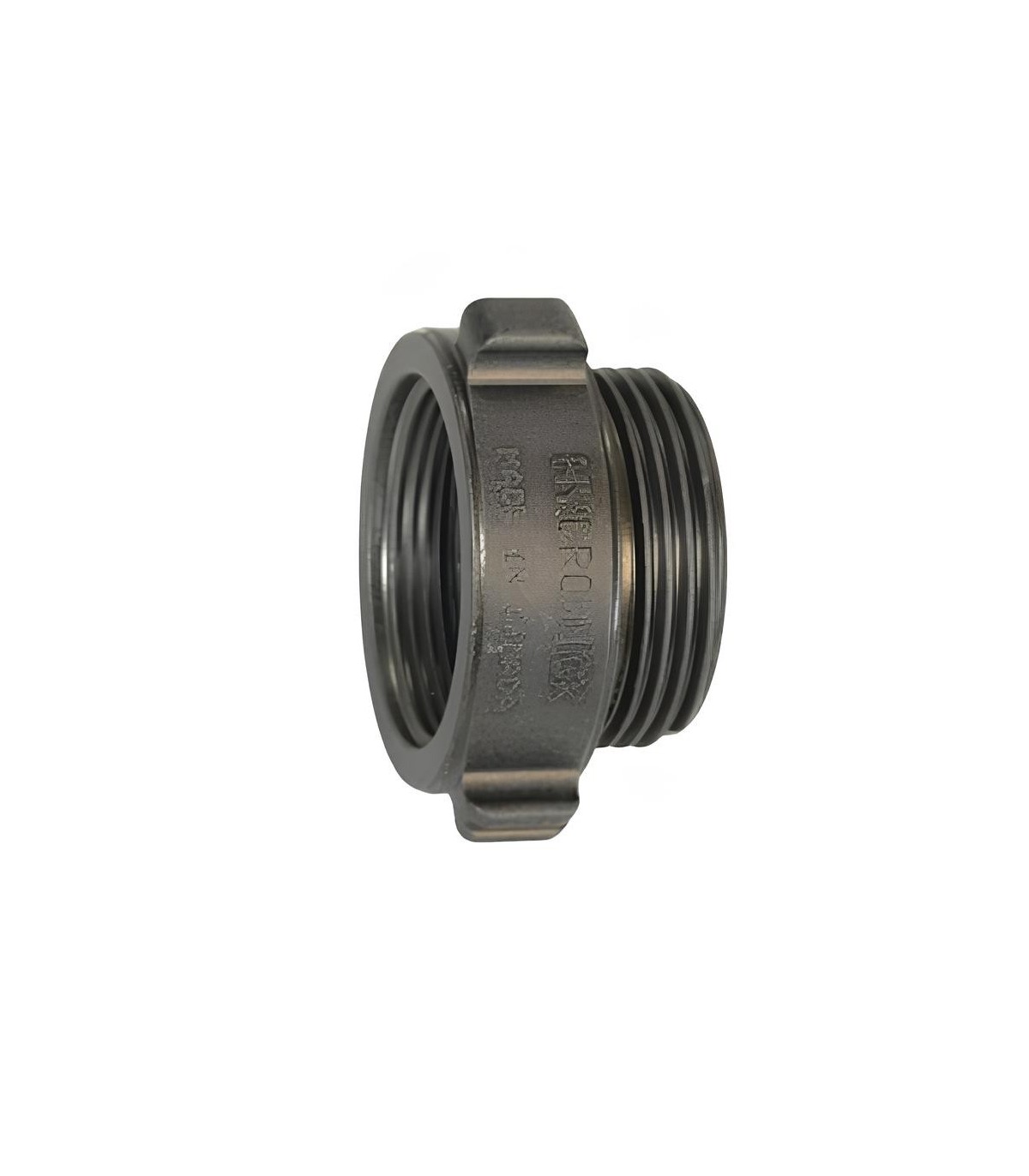 Heavy-duty extruded adapter 1.5" BSP female to 2" NPSH male, designed to connect incompatible fittings and ensure a reliable water supply. Ideal for fire departments and fire departments. Available at MMF Protection et Sécurité.