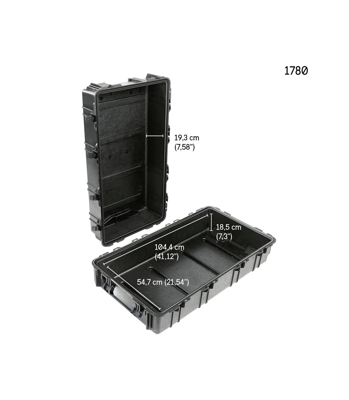 The Peli 1690 waterproof case is designed for intensive transport of heavy and bulky equipment. It enables equipment to be moved safely in demanding environments. Its robust IP67-certified design provides effective protection against water, dust and impact, even during frequent handling. Equipped with multiple carrying handles and reinforced wheels, this professional carrying case facilitates handling, even when more than one person is involved.
