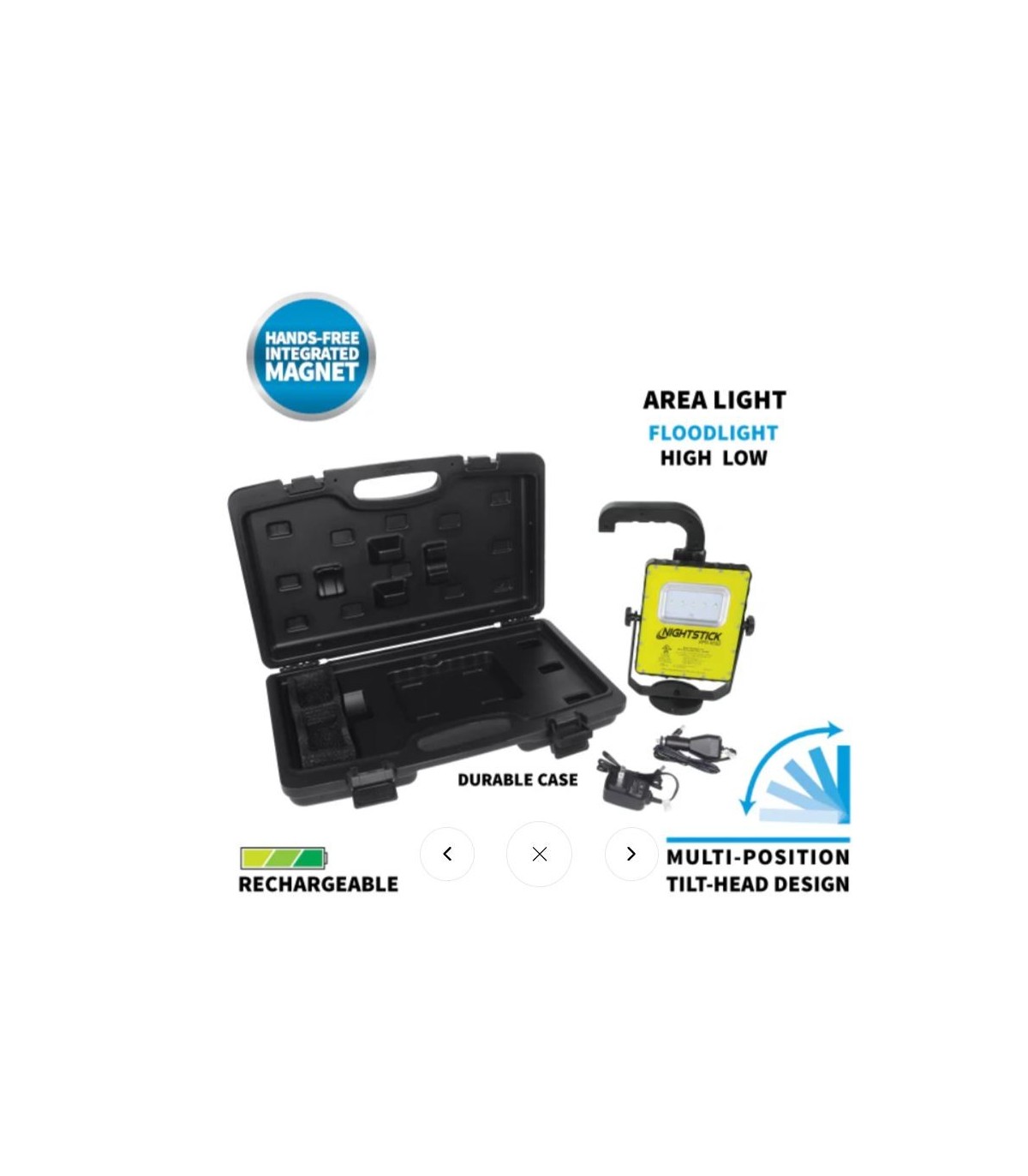 The NSR-1516RM rechargeable LED floodlight with magnetic base offers a light output of 2,500 lumens in high mode and 1,250 lumens in low mode, ideal for portable, powerful lighting. Made from die-cast aluminum, it is shockproof, chemical-resistant and IP-X7 waterproof. Its magnetic base enables it to be fixed to metal surfaces, and its cooling system ensures prolonged use without overheating. This lamp is perfect for construction professionals, emergency services, as well as outdoor and repair activities.