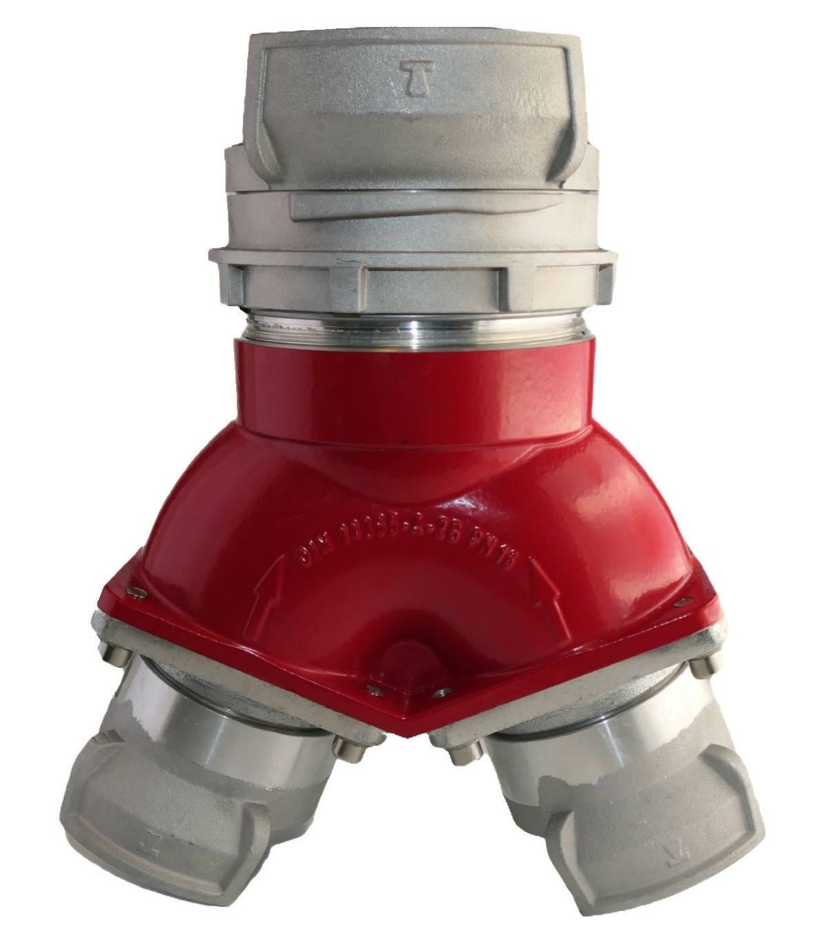 División de incendios con tres grifos de aluminio