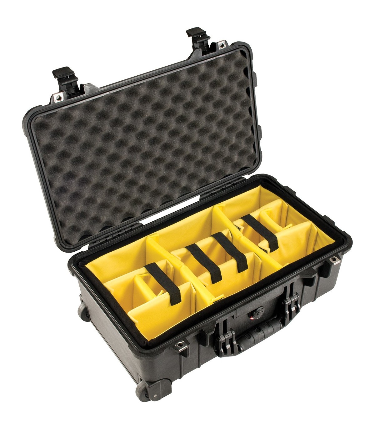 La maleta impermeable Peli™ Protector ofrece la máxima protección para tus equipos sensibles, incluso en las condiciones más extremas. Robusta, impermeable, a prueba de golpes y polvo, cuenta con cierres con llave, junta tórica, válvula de purga automática y cómodas asas. Su espuma Pick N Pluck™ permite un diseño interior personalizado. Fabricada en Estados Unidos, está hecha para durar.