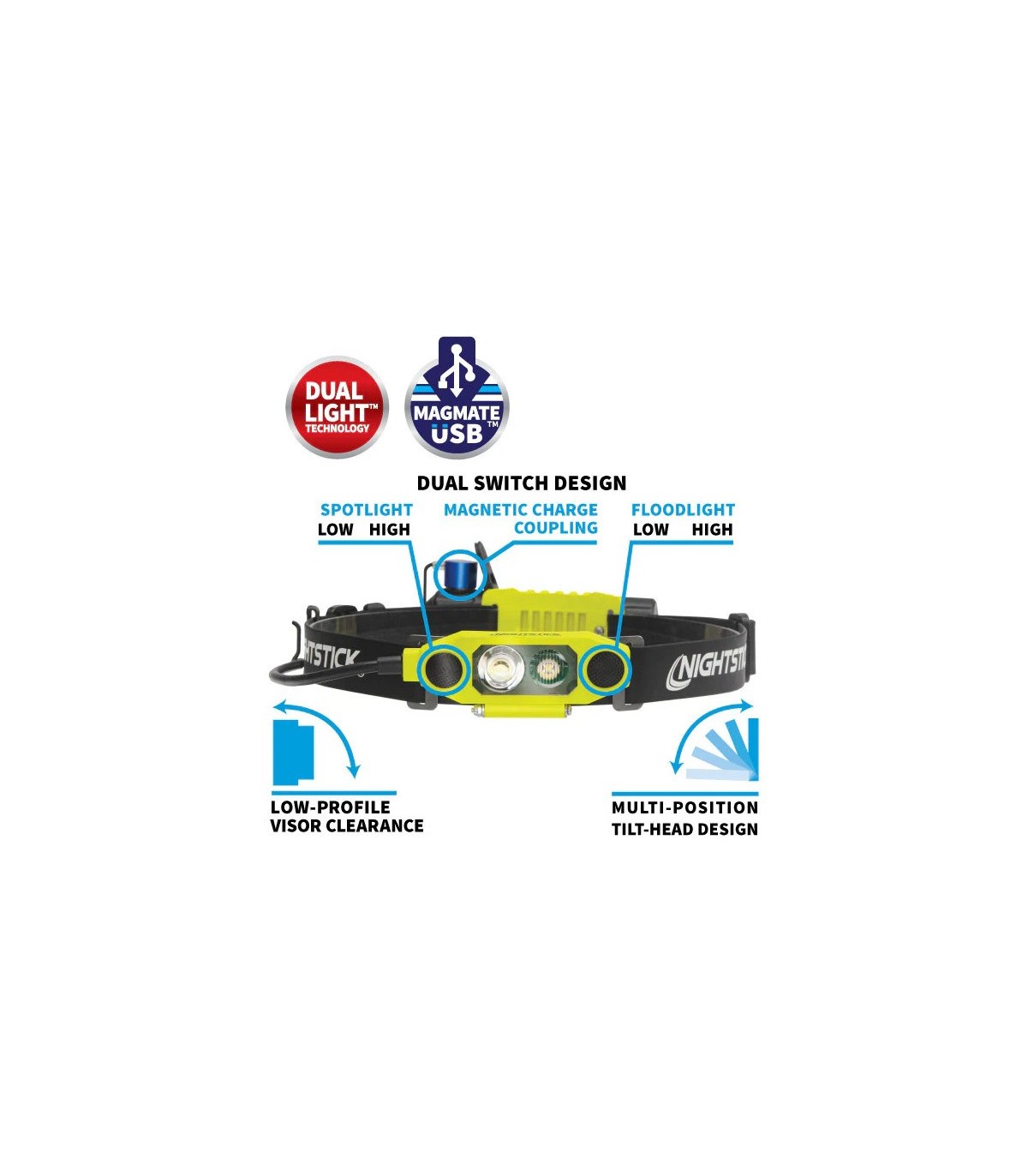 La lampe frontale ATEX Zone 0 rechargeable Magmate™ Dual-Light est conçue pour les professionnels évoluant en environnements dangereux, avec des certifications garantissant une sécurité maximale. Dotée d’une batterie Li-Polymère rechargeable et d’un système de charge magnétique USB, elle offre une grande autonomie. Son mode Dual-Light™ permet d’allier projecteur et éclairage large pour une visibilité optimale. Robuste et étanche (IP67), elle s’adapte aux casques grâce à une sangle antiglisse. Idéale pour le bâtiment, l’industrie et les interventions d’urgence, elle est un allié fiable pour travailler en toute sécurité.
